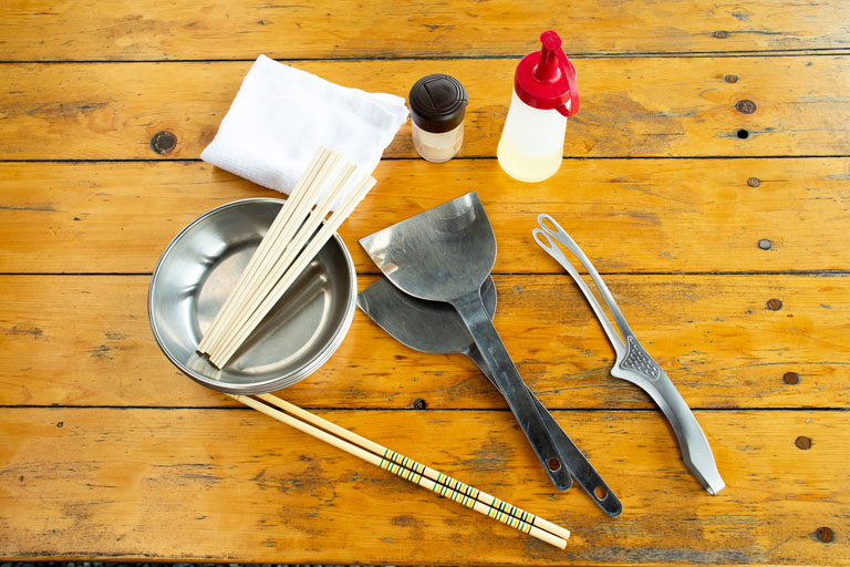 貸出備品 皿、割り箸、トング、菜箸、軍手、タオル、 焼網1枚、塩コショウを各テーブルにご用 意。この他、包丁、まな板なども貸出可。
