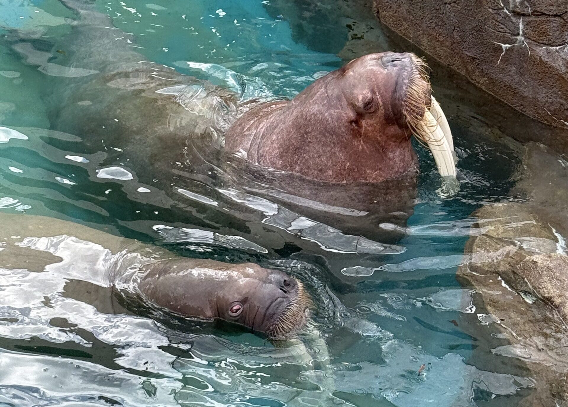 着後は、事前に想定していた環境の変化にも大きな問題は見られず、オスのセイウチ「キック」との顔合わせも無事に行われ、現在は同じ水槽で暮らしています。