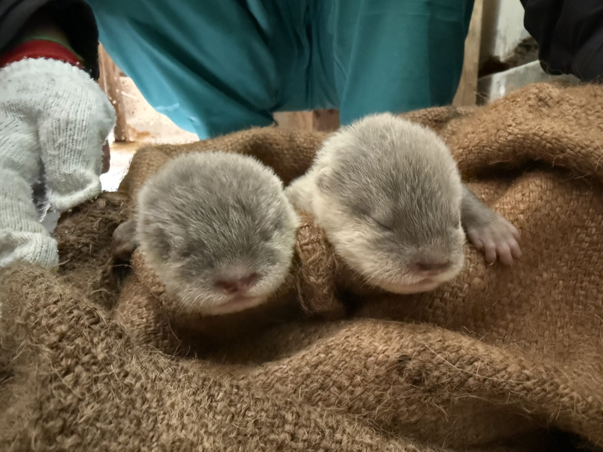コツメカワウソ(愛称:ロレーン)が 2 頭の赤ちゃんを出産しました。